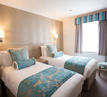Cómoda habitación con dos camas individuales, perfecta para amigos o familia pequeña.